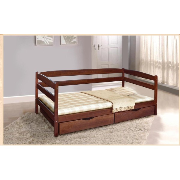 Розмір: Під матрац: 800*1900; 900*2000 (додаткова планка - опція).Висота ліжка 870мм. Колір: Світлий горіх, Темний горіх, Венге, Білий Матеріал: Буковий щит Односпальне ліжко Єва поєднує практичність, компактність, оригінальний дизайн і високоякісні екологічні матеріали за доступну ціну! Багатофункціональна модель Єва може використовуватися як ліжко, так і як зручний диван, а дві висувні шухляди для білизни, іграшок та аксесуарів допоможуть заощадити простір і зберігати порядок у кімнаті Ліжко Єва виготовляється з масиву бука, а дерев'яні вироби, як відомо, у всі століття і часи були і будуть популярними серед населення і не втратять своєї популярності довгі часи через свою надійність, міцність і стійкість до різних факторів.