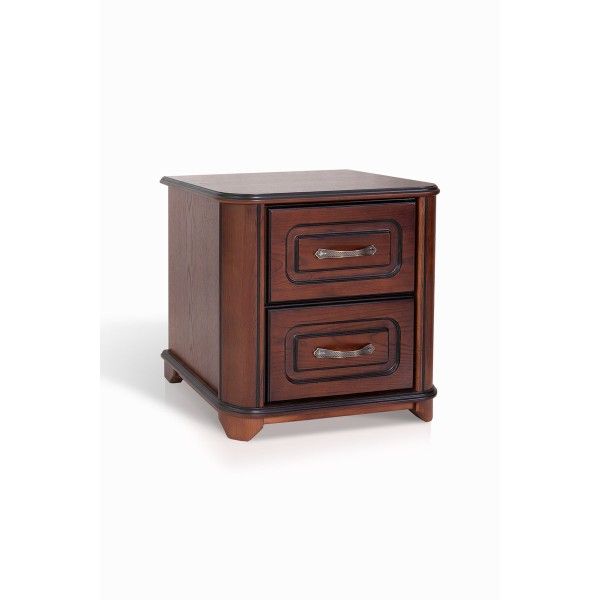 Тумба «Феліція» з патиною — це буде останнім штрихом до завершального комплекту для спальні. Тумбочка радує око поєднанням лаконічної суворої форми. Гарний колір темного горіха у поєднанні з патиною — зробить ваш інтер'єр багатим та чудовим. Вона має два ящики прикрашених декоративними ручками. Тумба не має гострих кутів. Модель виготовлена з масиву ясеня. Розмір 500*490*490