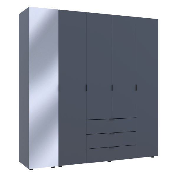Відкрийте для себе ідеальне рішення для організації вашого простору з комплектом шаф для одягу Doros Гелар. Ці стильні шафи, виконані в елегантному графітовому кольорі з дзеркальними вставками, не лише додають сучасного вигляду вашій кімнаті, але й забезпечують оптимальне зберігання одягу. Завдяки своїм компактним розмірам, вони легко впишуться в будь-який інтер'єр, надаючи вам можливість зберігати все необхідне під рукою.