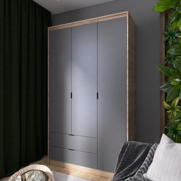 Ваша мрія про ідеальний порядок у гардеробі стає реальністю з розпашною шафою Еверест Сіті-1200. Завдяки продуманому дизайну та вдосконаленій організації простору, ця шафа забезпечить зручність зберігання одягу, взуття та аксесуарів. Висувні шухляди та штанга для вішалок дозволяють максимально ефективно використовувати кожен сантиметр, а стильне поєднання дуба сонома та графіту надає інтер'єру сучасного вигляду.
