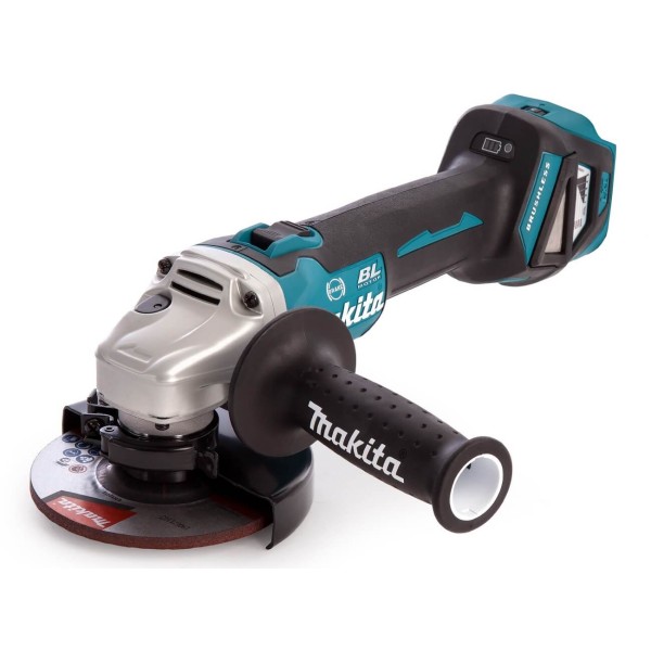 Угловая бесщеточная аккумуляторная шлифмашина Makita DGA513Z. Подходят круги 125 мм. Скорость работы от 3000 до 8500 об/мин. Без акб и з/у.