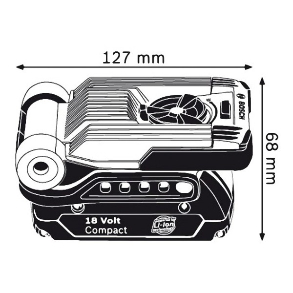 - Ліхтар приводиться в дію від будь-яких системних літій-іонних акумуляторів напругою 14,4-18 В.