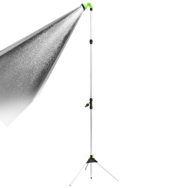 Садовий душ може також використовуватися в якості стаціонарного розпилювача для спрямованого поливу і зрошення високих рослин. Опора і стійка виготовлені з алюмінію. Поворотна голівка, кран і адаптер виготовлені з ударостійкого пластика.