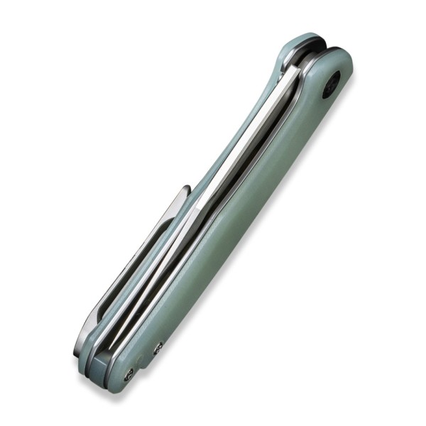 Матеріал клинка — сталь Nitro-V, яка ефективно чинить опір корозії завдяки вмісту азоту та близько 13% хрому. Різальна крайка легко піддається обробці, попри на високу твердість металу, що знаходиться в межах 59-61 HRC. Вертикальне сатинування клинка надає поверхні легку матовість. Вона приховує відбитки пальців і робить потертості менш видимими, зберігаючи зовнішній вигляд інструменту навіть після тривалої експлуатації.