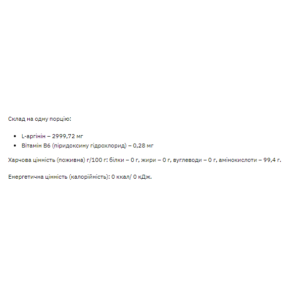 Енергетична цінність (калорійність): 0 ккал/ 0 кДж.