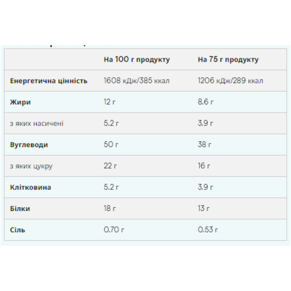 Пшеничне борошно, нерафінований коричневий цукор, вівсяний сироп, овочевий гліцерин, пептиди глютаміну (гідролізований пшеничний білок), стружка чорного шоколаду (9%) (какао-маса, цукор, емульсифікатор [соєвий лецитин], натуральні смакові добавки), какао-порошок, гороховий білок, оливкова олія, соєвий білок, стабілізатор (гуміарабік), кокосова олія, вода, розпушувач (бікарбонат натрію), смакова добавка, сіль.