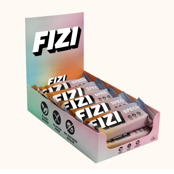 Склад:екстракт яблучного соку концентрований, ізолят протеїну горохового (21,1%) (містить 85% білка),ядра бобів арахісу (17,8%),кокосовий порошок,ядра горіхів мигдалю (8,7%),родзинки світлі (6,2%), сублімована вишня (6,2%), екстракт куркуми, кориця мелена, ксантанова камедь, аніс.