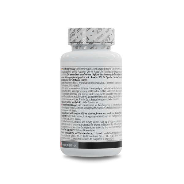 MST® Creatine HCL Креатин Гідрохлорид 90 капсул сприяє збільшенню маси тіла та сили м'язів, його застосування лежить в основі покращення результатів тренувань високої інтенсивності. Креатин є органічною сполукою, що належить до групи карбонових кислот. Ця азотовмісна кислота синтезується в організмі людини і міститься у ряді тканин, насамперед – у м'язах. Завдання креатину зводиться до підтримки енергетичного балансу, зокрема – усередині м'язових структур та клітин нервової системи. У медицині креатин використовують під час лікування патологій, що з атрофією м'язів.