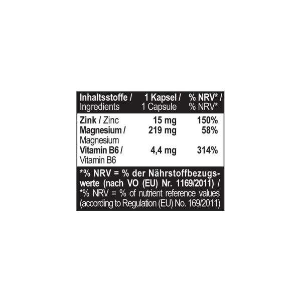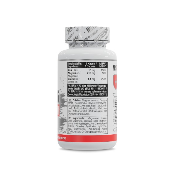 MST® ZMB6 | Zinc Magnesium B6 | - Комплекс мінералів і вітаміну В6 для профілактики гіповітамінозу. Продукт містить цинк глюконат, магній та вітамін В6. Доповнюючи один одного, компоненти підтримують нервову систему, дбають про скелетні м'язи, зміцнюють імунітет. Рекомендується тим, хто шукає форму цинку, магнію і високу концентрацію вітаміну В6, який посилює дію мінералів. Оптимальне співвідношення даних нутрієнтів підтримує функції нервової системи, піклується про м'язи та попереджає настання втоми. Рекомендований при фізичних та нервових навантаженнях, як додаткове джерело Цинку, Магнію та вітаміну В6. ОСОБЛИВОСТІ MST® ZMB6: • Випускається у вигляді вегетаріанських капсул, що легко проковтуються, для максимального засвоєння. • Цинк знаходиться у формі глюконату (натуральна сіль глюконової кислоти), поєднує в собі хорошу засвоюваність (60,9%), не викликає роздратування в ШКТ. • Одна капсула містить 15 мг цинку глюконату, що становить 150% норми споживання (рекомендованої добової дози), 219 мг магнію (58%) і 4,4 мг вітаміну В6 (314%). • Швидко засвоюється. • Підходить до вегетаріанців. • Відсутність ароматизаторів, барвників та підсолоджувачів. Організм людини містить ряд мікроелементів, необхідних для виконання багатьох важливих функцій, наприклад вироблення гормонів, роботи зорової, кровотворної, кістково-м'язової, імунної системи. Нестача мікроелементів при звичайному харчуванні практично неминуча. Отже, неминучі і порушення основних біохімічних процесів, які у організмі. Усунути їхній дефіцит можна за допомогою комплексу MST ZINC MAGNESIUM B6. MST® ZMB6 сприяє: - профілактицісерцево-судинних та онкологічних захворювань, - Стабілізації рівня глюкози, - Оптимальної мінералізації кісткової тканини, - Зменшенню втоми та втоми, - Зниженню ризику виникнення судом, - поліпшенню засвоєння кальцію, калію та натрію, - Захистц організму від окисного процесу, - Здоров'ю нервової системи, - Нормалізації сну, - виробленню кератину та колагену, - Зменшенню акне та підтримці здорового стану шкіри, - Чоловічому та жіночому репродуктивному здоров'ю. Цинк має протизапальні, антиоксидантні, антимікробні, імуномодулюючі властивості. Він необхідний для здорової імунної системи, щоб боротися з інфекційними хворобами та раком. Цинк - другий після заліза мікроелемент за частотою народження в організмі, міститься в кожній клітині організму і є компонентом більше двохсот ферментів людини. Він підвищує вироблення інтерферонів – білків, які захищають організм від вірусів, бактерій та інших мікроорганізмів. Цинк не дає поширитись вірусу в клітині, захищає від руйнування лімфоцити. Він сприяє синтезу власного колагену, знижує розвиток шкірних запальних процесів (акне), а також прискорює загоєння ран. Магній бере участь у виробленні більш ніж 3000 ферментів нашого організму та призначений для забезпечення живильної підтримки здорової роботи серця, м'язів, нервів та кровообігу. Для максимального засвоєння цинку та магнію необхідне і певне дозування вітаміну B6 – у цьому комплексі вітамін та мінерали перебувають у ефективному співвідношенні, швидко засвоюються та чудово доповнюють один одного. Крім того, В6 необхідний для синтезу червоних кров'яних тілець та роботи імунної системи. Комплекс MST® ZMB6 стане незамінною добавкою під час інтенсивних тренувань або під час стресових ситуацій. Зав