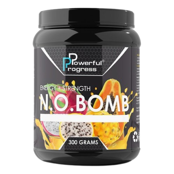 NO BOMB – революційна новинка від бренду Powerful Progress. Високоефективний передтренувальний комплекс спеціально розроблений для спортсменів, яким необхідний потужний заряд енергії перед тренуваннями. Передтренувальний комплекс NO BOMB містить найкращі та перевірені інгредієнти, які допоможуть атлету розкрити весь потенціал свого організму та відчути максимальну силу та витривалість на кожному тренуванні. З кожною порцією NO BOMB спортсмен отримує цілий комплекс вибухових компонентів, у тому числі 3000 мг високоочищеного цитруліну малату, у тому числі 1680 мг L-цитруліну, що допомагає покращити фізичну форму та спортивні показники завдяки підвищеній витривалості під час аеробних тренувань та змагань. Ще у складі передтренувального комплексу NO BOMB є цілих 1370 мг L-аргінін альфа-кетоглутарату, у тому числі 890 мг AAKG, що значно підвищує продуктивність тренувань. Ідеальна комбінація L-аргініну та кетоглютарату альфа є ключовою у метаболізмі амінокислот і бере участь у синтезі білка, сильно підвищуючи рівень азоту, що важливо для зростання м'язів. Ключові переваги перед тренувальним комплексом NO BOMB: значно підвищує силу та витривалість при інтенсивних тренуваннях; сприяє швидкому відновленню м'язових тканин; підвищує продуктивність та працездатність; зміцнює імунну систему та регулює рівень холестерину в крові. Склад в одній порції – 2 мірні ложки (10 г): Цитрулін малат – 3000 мг серед них цитрулін – 1680 мг Целюлоза мікрокристалічна – 2110 мг L-аргінін альфа-кетоглютарат – 1370 мг Серед них AAKG – 890 мг тирозин – 750 мг L-лізин – 700 мг Бета-аланін – 530 мг Діоксид кремнію – 370 мг Кофеїн – 130 мг Вітамін В12 – 110 мг Склад: Цитрулін малат (L-цитрулін 56%), мікрокристалічна целюлоза, L -кетоглутарат (AAKG 65%), таурин, L-тирозин, L-лізин, бета-аланін, діоксид кремію, кофеїн, вітамін В12, натуральний аромат та підсолоджувачі.