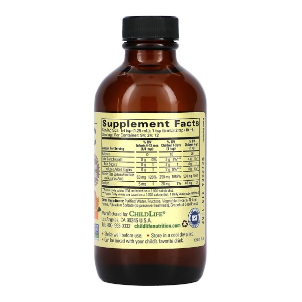Вітамін C ChildLife® — це смачна рідка добавка з натуральним апельсиновим смаком, яку зручно давати дітям будь-якого віку.
