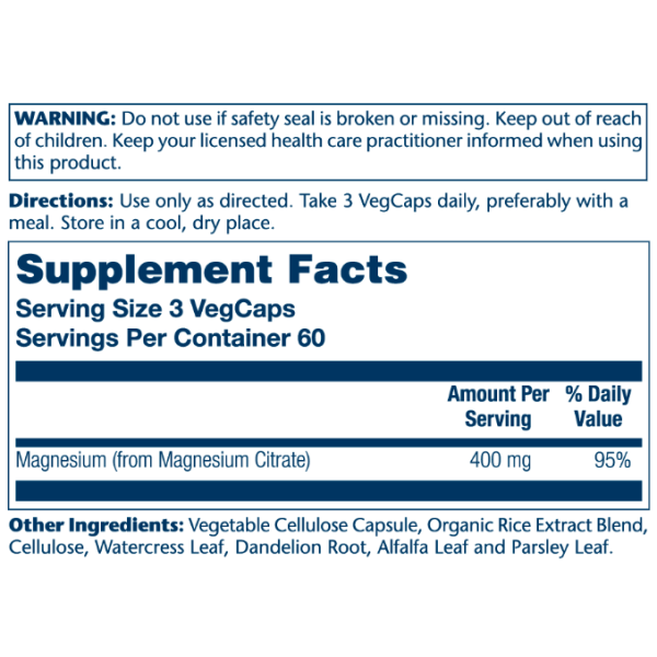 Solaray Magnesium Citrate 400mg - це чудовий вибір для тих, хто прагне підтримувати своє здоров'я на високому рівні.