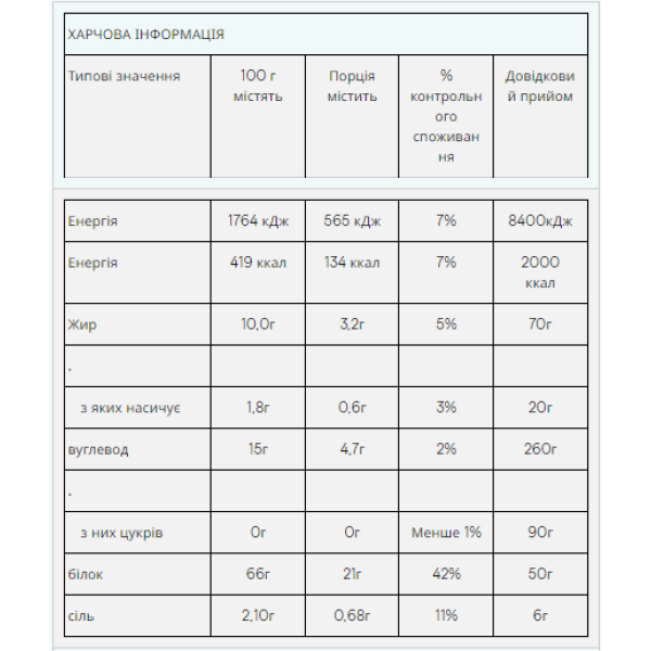 Вміст клітковини для поліпшення перистальтики кишечника.