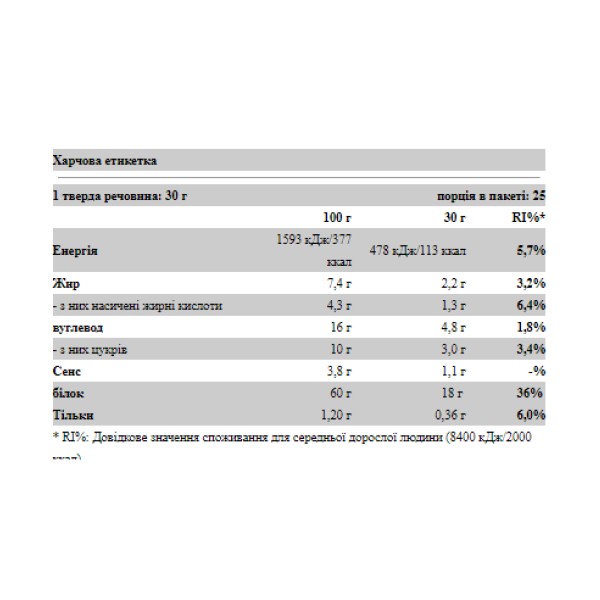 Рекомендоване дозування: 1 порцію (30 г – 1 мірна ложка) порошку змішайте з 250 мл води або нежирного молока. У дні тренувань приймайте дві порції: одну після тренування та одну між прийомами їжі.