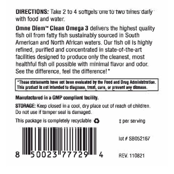 OmneDiem ® Clean Omega 3 забезпечує риб’ячий жир найвищої якості з жирної риби, яка видобувається у водах Південної Америки та Північної Африки. Наш риб’ячий жир високоочищений, очищений і концентрований на найсучасніших установках, призначених для виробництва тільки найчистішого, найкориснішого риб’ячого жиру з мінімальним смаком і запахом. Побачте різницю, відчуйте різницю!