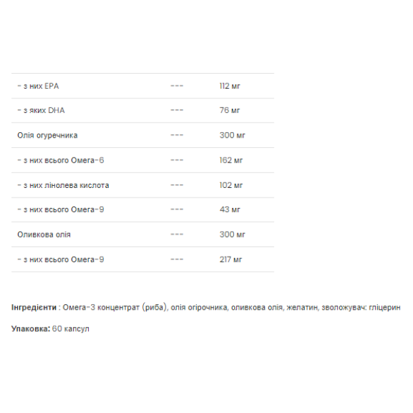Омега 3-6-9 - це спеціально розроблена добавка, яка поставляється з риб’ячим жиром, оливковою олією та олією огуречника.