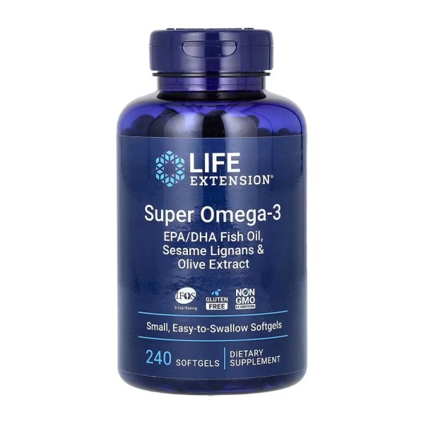 Жирні кислоти ЕПК та ДГК з риб’ячого жиру підтримують здоров’я серцево-судинної системи, мозку та мають інші корисні властивості. Створена з урахуванням переваг середземноморської дієти, добавка «Суперомега-3» містить жирні кислоти омега-3 ЕПК та ДГК, необхідні вашому організму, а також ефективні поліфеноли оливи та лігнани кунжуту, що забезпечують додаткову користь для серцево-судинної системи, когнітивних функцій і здоров’я всього організму.