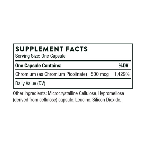 У рафінованому борошні та рафінованому цукрі спостерігається значний дефіцит хрому. Крім того, метаболічний стрес, інтенсивні фізичні вправи та вагітність можуть збільшити потребу в хромі. Піколінат хрому від Thorne містить хром, зв’язаний із піколіновою кислотою, що полегшує його засвоєння, тож ви отримуєте всі переваги хрому. Хром у формі піколінату широко вивчався на предмет підтримки метаболізму цукру в крові та чутливості до інсуліну. Крім того, відзначалося зниження потягу до вуглеводів. Інші дослідження показують, що піколінат хрому може посилити ефективність заходів для корекції ваги.