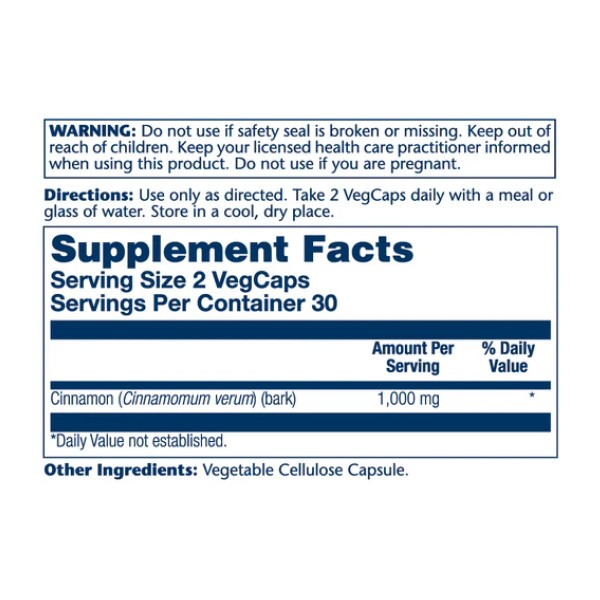 Cinnamon Bark 1000mg (2 serv. of 500mg) - 60 vcaps
