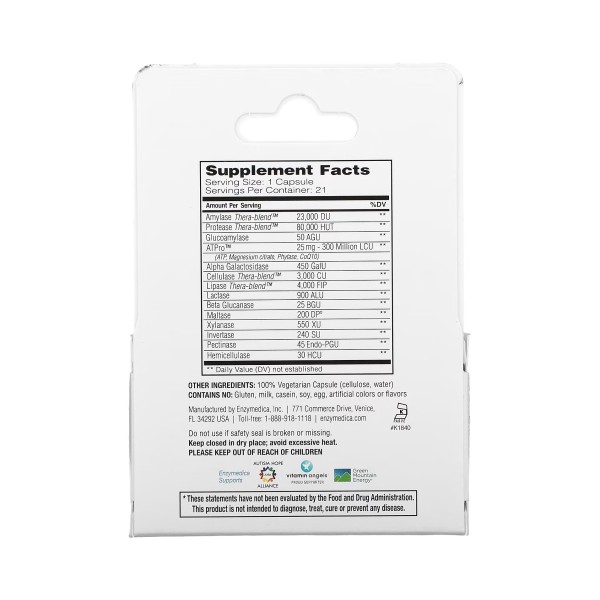 Thera-blend — це ексклюзивний процес, який поєднує кілька штамів ферментів, що працюють при різних рівнях рН. Було доведено, що ферменти, отримані методом Thera-blend, в три рази ефективніші та діють більш ніж в шість разів швидше, ніж найбільш популярні дієтичні добавки для підтримки травлення.