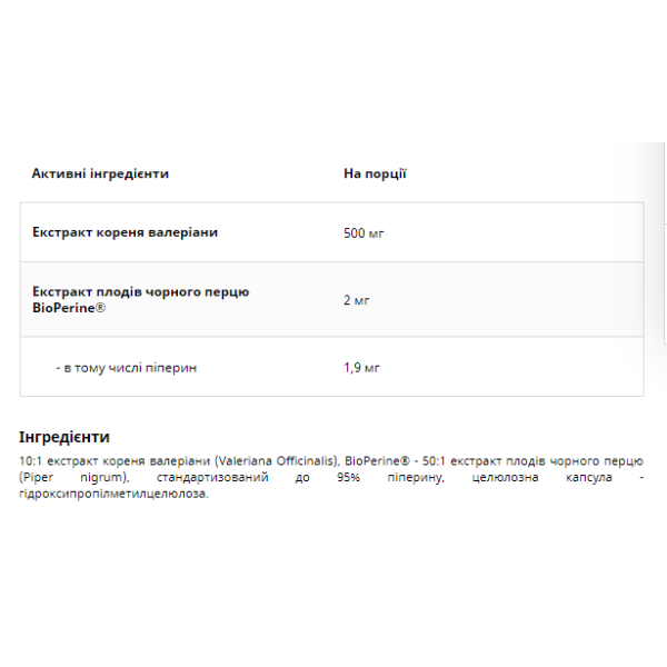 Високоякісний екстракт кореня валеріани (Valeriana Officinalis).