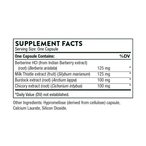 Цикорія ФЕ 3:1. Лопуха ФЕ 4:1. Берберин гідрохлорид із концентрату барбарису 85 %. Розторопша, стандартизована до вмісту 65 % силімарину.