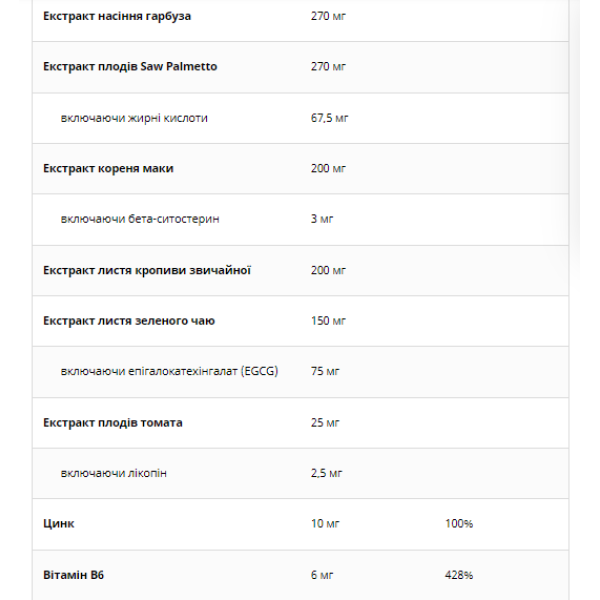 Він містить цілих 6 натуральних інгредієнтів, які можуть допомогти полегшити симптоми простати, такі як часте сечовипускання, дискомфорт, біль і проблеми з сечовипусканням.