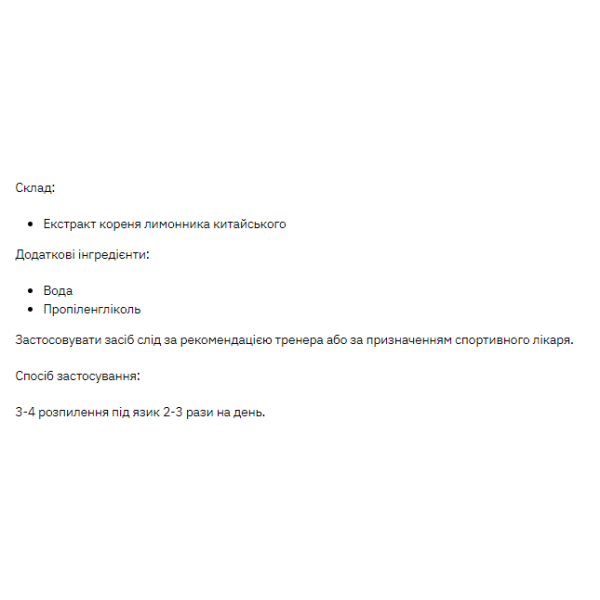Застосовувати засіб слід за рекомендацією тренера або за призначенням спортивного лікаря.