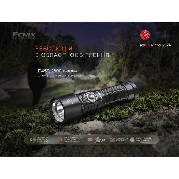 Ліхтар Fenix LD45R працює на базі світлодіода Luminus SFT70 (колірна температура 6500К) і пропонує зовсім новий підхід до використання освітлювальних пристроїв завдяки модифікаціям, які дозволяють точно налаштовувати тип освітлення.