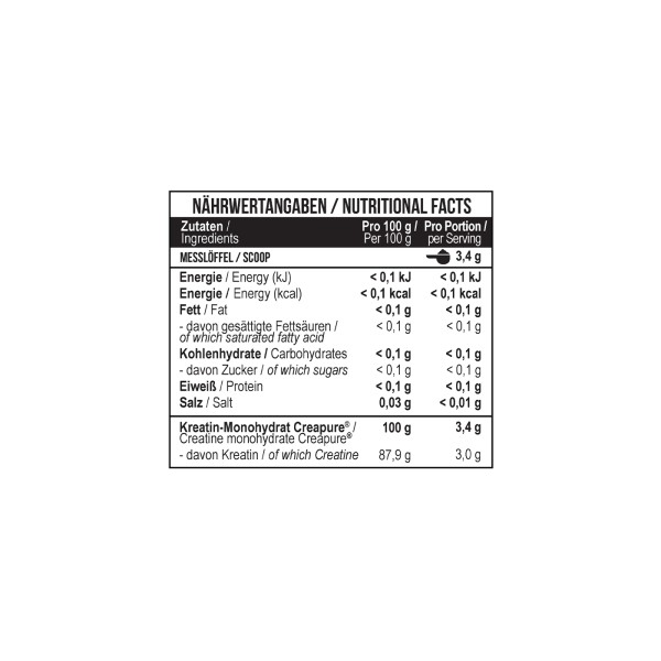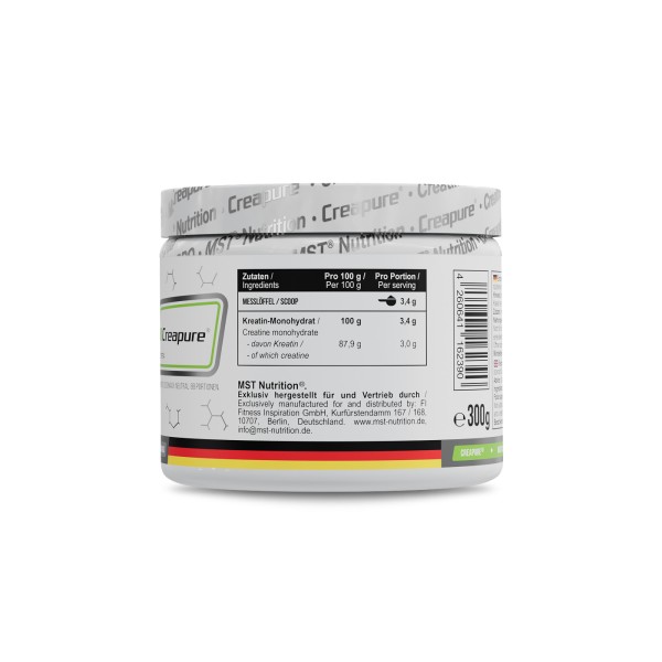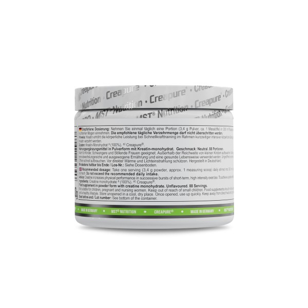• 3400 мг креатину моногідрату в порції; • мікронізована швидко засвоювана форма; • відсутність у складі ароматизаторів, барвників та інших добавок; • гарна розчинність у рідині; • відсутність побічних ефектів; • оптимальне співвідношення якості та ціниMST® Creatine PRO with Creapure® Без смаку 300 грамів рекомендується для:
