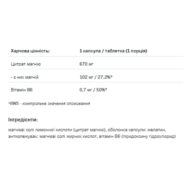 Цитрат магния является одной из наиболее хорошо усваиваемых организмом форм магния, его усвоение находится на уровне от 25% до 90%. Дозу и форму этого ценного ингредиента в виде пищевой добавки можно найти в ALLNUTRITION Mag B6. Цитрат магния представляет собой соединение, которое объединяет карбонат магния с лимонной кислотой. Сочетание этих двух соединений делает его одной из самых усваиваемых форм этого элемента.