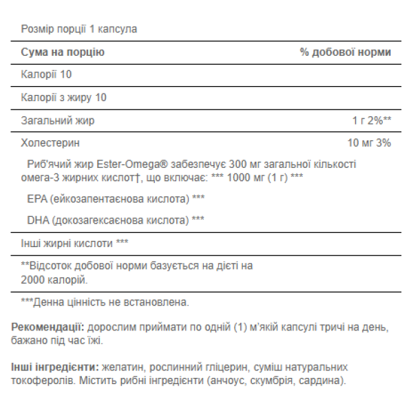 MEGA 3 FISH OIL 1000 – это целых 1000 мг чистого рыбьего жира в одной капсуле, который содержит в себе 300 мг oмега-3 жирных кислот!