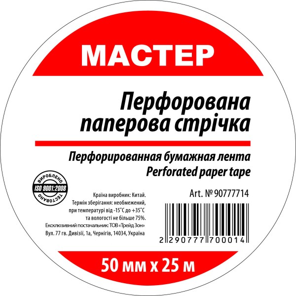 Стрічка перфорована паперова 50мм*25м (60 шт/ящ)