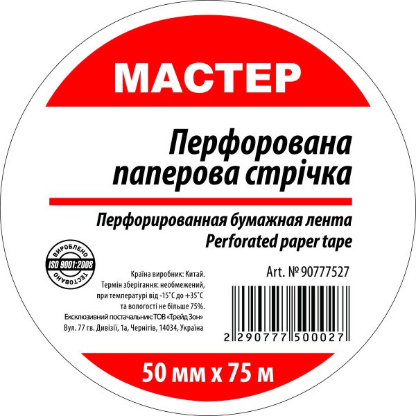 Стрічка перфорована паперова 50мм*75м (20 шт/ящ)