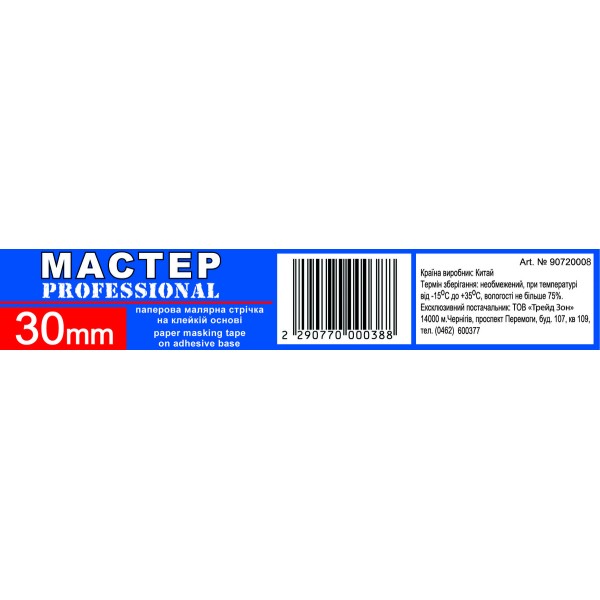 Малярна стрічка"Мастер" 30мм жов.(8сп,48 шт/ящ)Pro