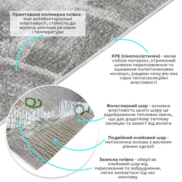 3. Теплоизоляция: Вспененный ХРЕ и фольгированный слой обеспечивают хорошую теплоизоляцию, что помогает поддерживать комфортную температуру в помещении.