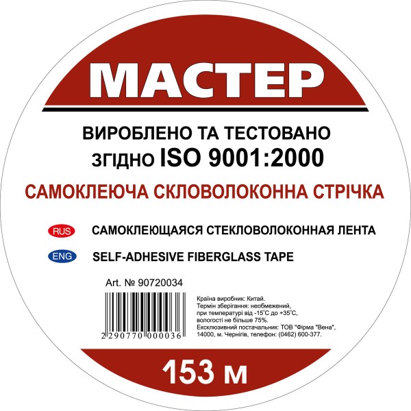 Спеціальну склотканинну стрічку на клейовій основі Майстер використовують для запобігання утворенню тріщин і зміцнення поверхонь.Призначено для проклеювання: • Кутів, швів і тріщин на штукатурених і бетонних поверхнях• Стиків гіпсокартону, оргаліту, ДСП та інших листових матеріалів• Місць примикання дверних і віконних коробок до стін, стель і підлог Переваги та особливості:• Підвищує механічну міцність покриттів• Стійка проти впливу лугів, не схильна до розкладання• Знімає механічні напруги• Запобігає появі тріщин на оброблюваних поверхнях
