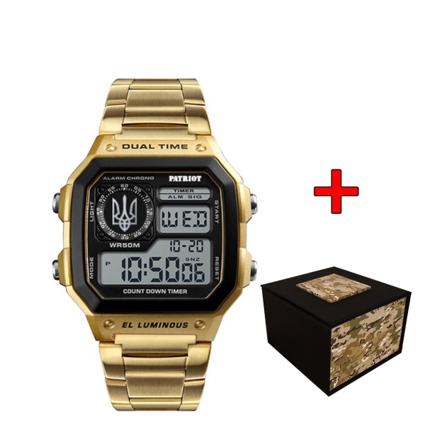 Представляем вам наручные часы Patriot 011YGUASI – стильный и надежный аксессуар, идеально подходящий для ежедневного использования и активного образа жизни. Часы выполнены в квадратном корпусе из поликарбоната, с элегантной черной окраской, что подчеркивает его спортивный и casual стиль. Ремешок из нержавеющей стали золотистого цвета придает изяществу, а прекрасный трезубец на циферблате символизирует украинскую идентичность.