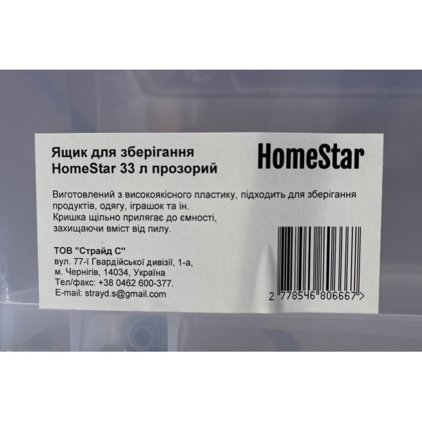 Ящик для зберігання HomeStar 33 л прозорий