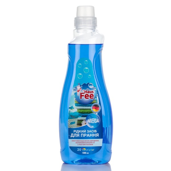 Средство для стирки Haus Fee универсал используется для стирки хлопчатобумажных, синтетических, льняных изделий, кроме белья из шерсти и шелка. Сохраняет глубину цветов и структуру ткани. Средство имеет высокие моющие способности, что обеспечивает эффективное удаление стойких загрязнений при температуре от 30 °С до 90 °С.