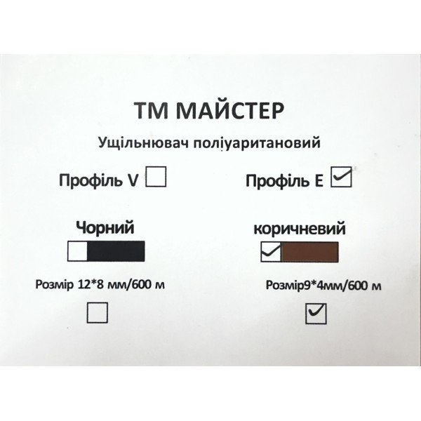 Ущільнювач самоклеючий, МАЙСТЕР для дверей і вікон профіль - чудовий метод для збереження температури в кімнаті взимку, осінню, весною. За рахунок щільного стикування дверної коробки з самими дверима, рамою і вікном можна назавжди забути про протяги. Дуже гнучкий, добре липне до усіх поверхонь і стійкий до зносу! Колір: білий, чорний, коричневий.