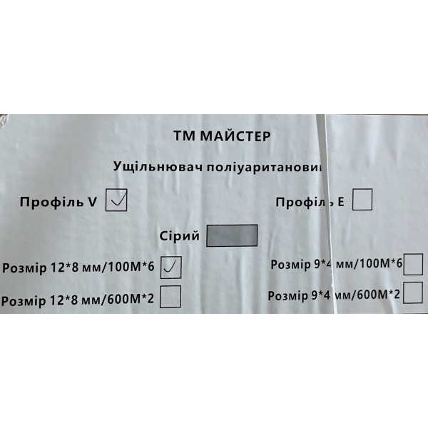 Ущільнювач поліурит(профільV)сірий 12*8 мм/100 м