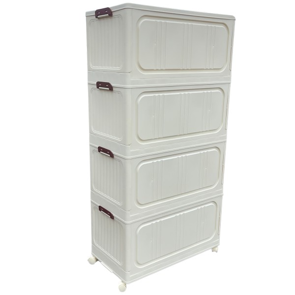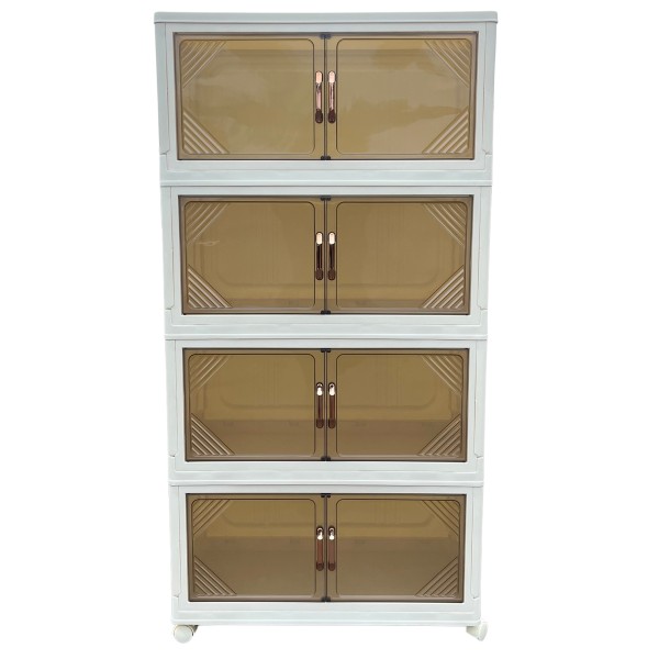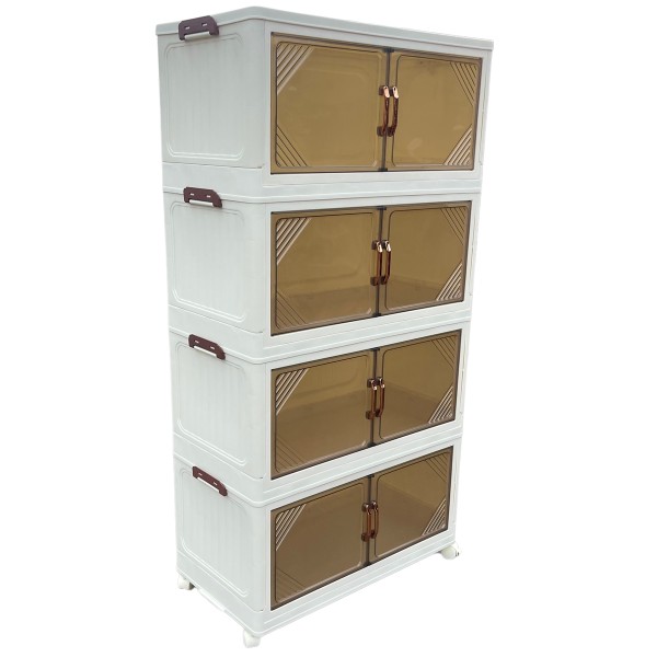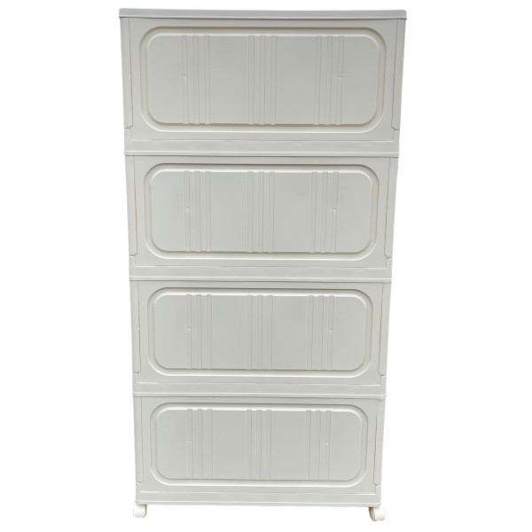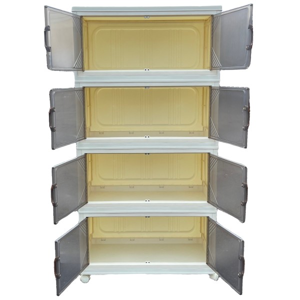 Пластикова шафа Home Star на 4 полиці – це практичне рішення для організації зберігання вдома, в офісі чи на дачі. Завдяки колесам із гальмами її легко переміщати, а дверцята на магнітах забезпечують зручність у користуванні та надійний захист вмісту. Основні переваги: Мобільність: Колеса з гальмами дозволяють без зусиль переміщати шафу в потрібне місце та фіксувати її там, де це потрібно. Місткість: Чотири просторі полиці ідеально підходять для зберігання одягу, взуття, побутових дрібниць, інструментів чи інших речей. Зручність у використанні: Дверцята з магнітами легко відкриваються та надійно закриваються, захищаючи вміст від пилу. Якісний матеріал: Виготовлена з міцного пластику, який не боїться вологи та стійкий до перепадів температур. Легкий догляд: Поверхню легко мити, що робить шафу ідеальною навіть для вологих приміщень. Де використовувати? У передпокої для зберігання взуття та аксесуарів, у ванній кімнаті для рушників і засобів догляду, на балконі чи в гаражі для зберігання інструментів або інших речей, у офісі для документів та оргтехніки. Пластикова шафа Home Star на 4 полиці – це поєднання практичності, мобільності та сучасного дизайну, що допоможе створити ідеальний порядок у вашому просторі!